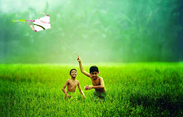 Nắng chiều ngả thấp hắt màu vàng xuộm trên cánh đồng. Hai đứa lại bảo: Chiều ...