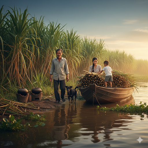 Nói là làm, ông âm thầm rời xóm cũ, lang thang khắp nơi, tránh mặt người thân, bạn bè. Thấy mảnh đất bỏ hoang ở gần bãi bồi ven sông, không xa khu chợ vàm nổi tiếng có nhiều quán thịt chó mà trước đây ông hay ghé để mua mắm muối nên ông liều mạng đến cất cái chòi tạm để ở. Thấy ông tội nghiệp, cũng không ai nói hay làm khó dễ gì. Hàng ngày, ông đi bồi sình cho những hộ trồng mía kiếm miếng ăn. Nhưng công việc ấy cũng không kéo dài. Ông ngày càng yếu, lại nghiện rượu, bữa làm bữa nghỉ nên riết không ai thuê nữa và thế là ông sống trong túng quẫn… Sống cô độc trong căn chòi lá, cơn giận trong ông cũng dần tan biến, ông bỗng thấy nhớ vợ, nhớ thằng Tý quá, nhớ những buổi chiều đậu ghe dưới bến sông ăn cơm. Ông nhớ cái dáng lom khom, hiền hậu của bà lúc nấu cơm, nhớ cả món mắm kho chấm bông lục bình mà bà hay nấu để ông nhâm nhi vài ly cho giãn gân giãn cốt. Vậy mà nhiều lần ông nỡ đánh bà. Ông nhớ thằng Tý háo ăn, mặt mũi tèm lem sau mỗi lần “xước” mía, nhớ lúc nó chăm chú nhìn ông gỡ xương cá rồi đưa cho nó “ùm” một cái. Từ ngày về ở căn chòi này, có lần ông vô tình gặp được người quen, nói có gặp lại vợ ông và thằng Tý, họ bây giờ sống cũng ổn. Ông tự nhủ khi nào có đủ tiền sẽ lặn lội qua Nam Vang tìm vợ con tạ tội. Gia đình ông sẽ sum họp và làm lại từ đầu. Nhưng biết đến khi nào, dòng suy nghĩ của ông tắt lịm khi cơn thèm rượu bất ngờ ập đến.