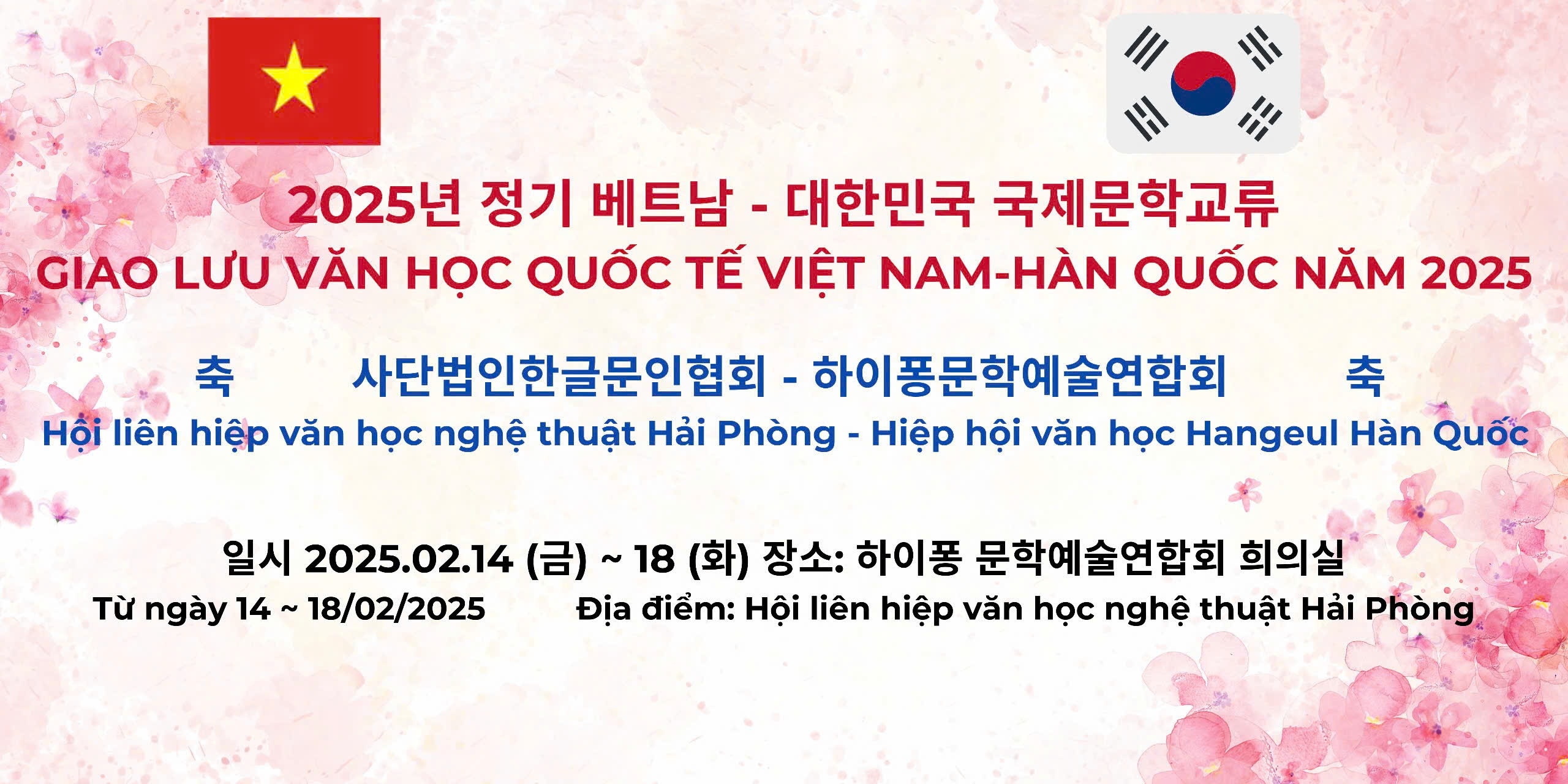 Từ ngày 14-18/2/2025, đoàn gồm 20 nhà thơ Hàn Quốc thuộc Hội thơ hiện đại Hàn Quốc và Hiệp hội Văn học Hangeul Hàn Quốc có chuyến thăm và giao lưu với giới văn chương Việt Nam. Trưởng đoàn là bà Jung Myung Sook–Đại biểu Hội đồng nhân dân thành phố Seoul, Chủ tịch Hiệp hội Văn học Hangeul, đồng thời là chủ tịch Ủy ban hợp tác đối ngoại Hiệp hội Văn học Hàn Quốc. Đây là hoạt động nhằm tăng cường sự kết nối giữa hai nền văn học, đồng thời mở ra cơ hội hợp tác, trao đổi giữa các nhà thơ hai nước.
