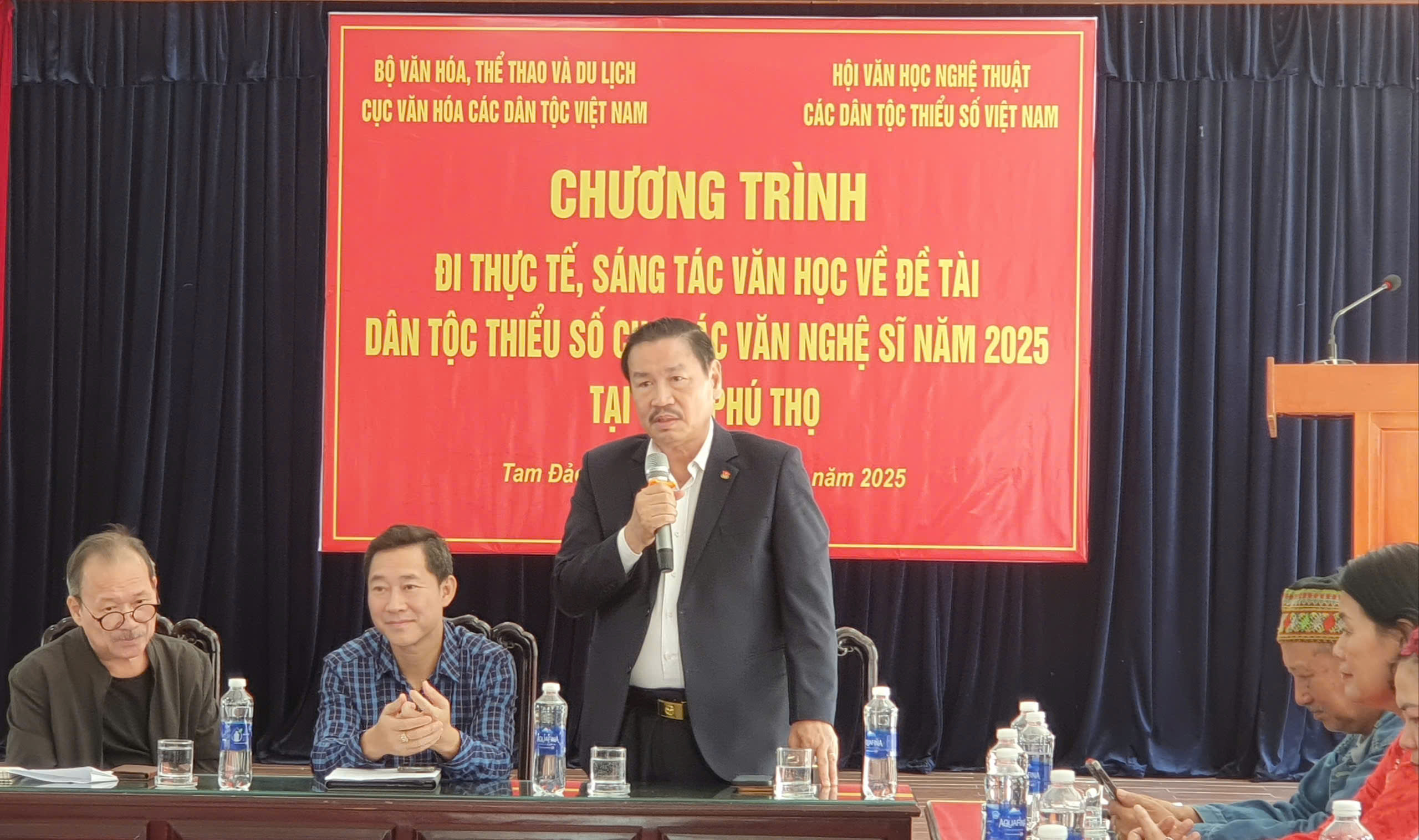 Phát biểu tại buổi lễ, ông Lê Anh Hòa – Đại diện Cục Văn hóa các dân tộc Việt Nam (Bộ Văn hóa, Thể thao và Du lịch) nhiệt liệt chào mừng các hội viên đã về với Phú Thọ, mảnh đất Vua Hùng. Ông nhấn mạnh mục đích của chuyến đi là nhằm có sáng tác đóng góp công cuộc bảo tồn và phát huy bản sắc văn hóa các dân tộc thiểu số (VHDTTS), tạo cầu nối giữa đời sống nhân dân với “cây viết, cây cọ” của người nghệ sĩ. Bộ Văn hóa, Thể thao và Du lịch (VH-TTDL) mong muốn qua hành trình thực tế này, các VNS sẽ có cơ hội tìm hiểu cặn kẽ về văn hóa, tín ngưỡng, lối sống, và cách thức sản xuất của đồng bào, từ đó tạo ra những tác phẩm phản ánh sinh động đời sống văn hóa, thẩm mỹ, khơi dậy những giá trị văn hóa tiềm ẩn. Ông tin tưởng rằng, với góc nhìn sâu sắc của người nghệ sĩ, hình ảnh Đất Tổ Vua Hùng cùng những nét đẹp VHDTTS sẽ được lan tỏa mạnh mẽ. Ông Hòa cũng bày tỏ kỳ vọng những ghi chép, phản ánh chân thực về đời sống văn hóa DTTS, bằng tài năng và tâm huyết của VNS, sẽ gặt hái nhiều thành công, góp phần bảo tồn và phát huy bản sắc VHDTTS trong thời đại mới.