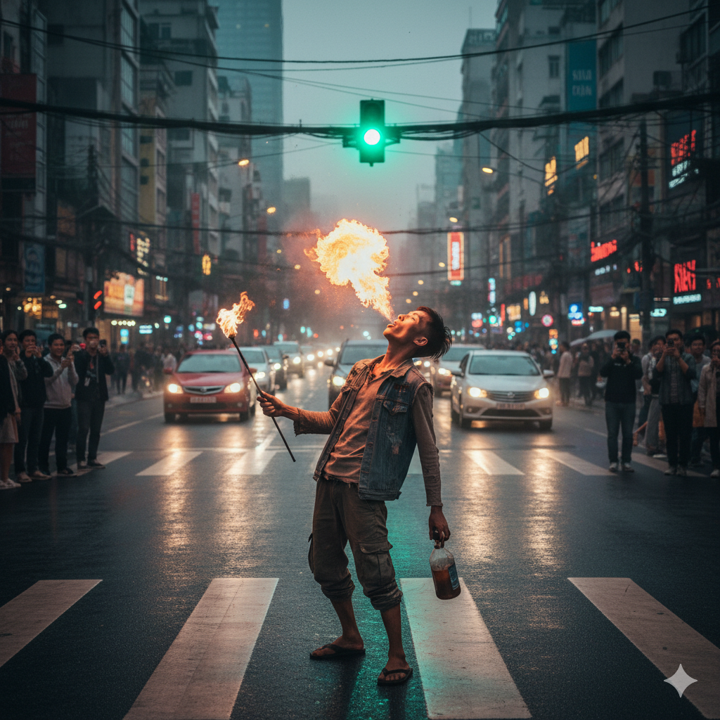 Giữa khí trời hầm hập, không khí khô khốc như cháy, những giọt mồ hôi ...