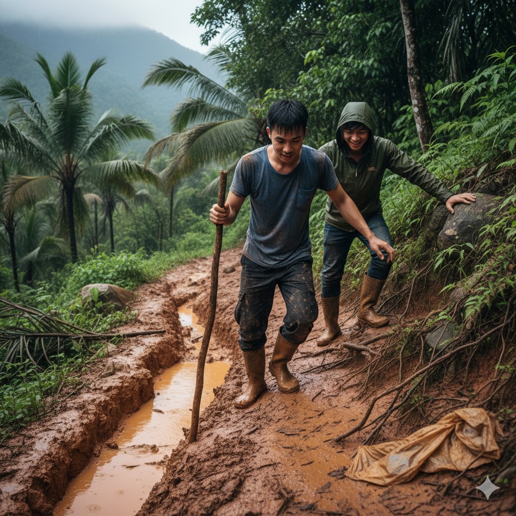Mồ hôi thấm đẫm, những cành thông lắc lư tạo nên tiếng xào xạc, gió ...