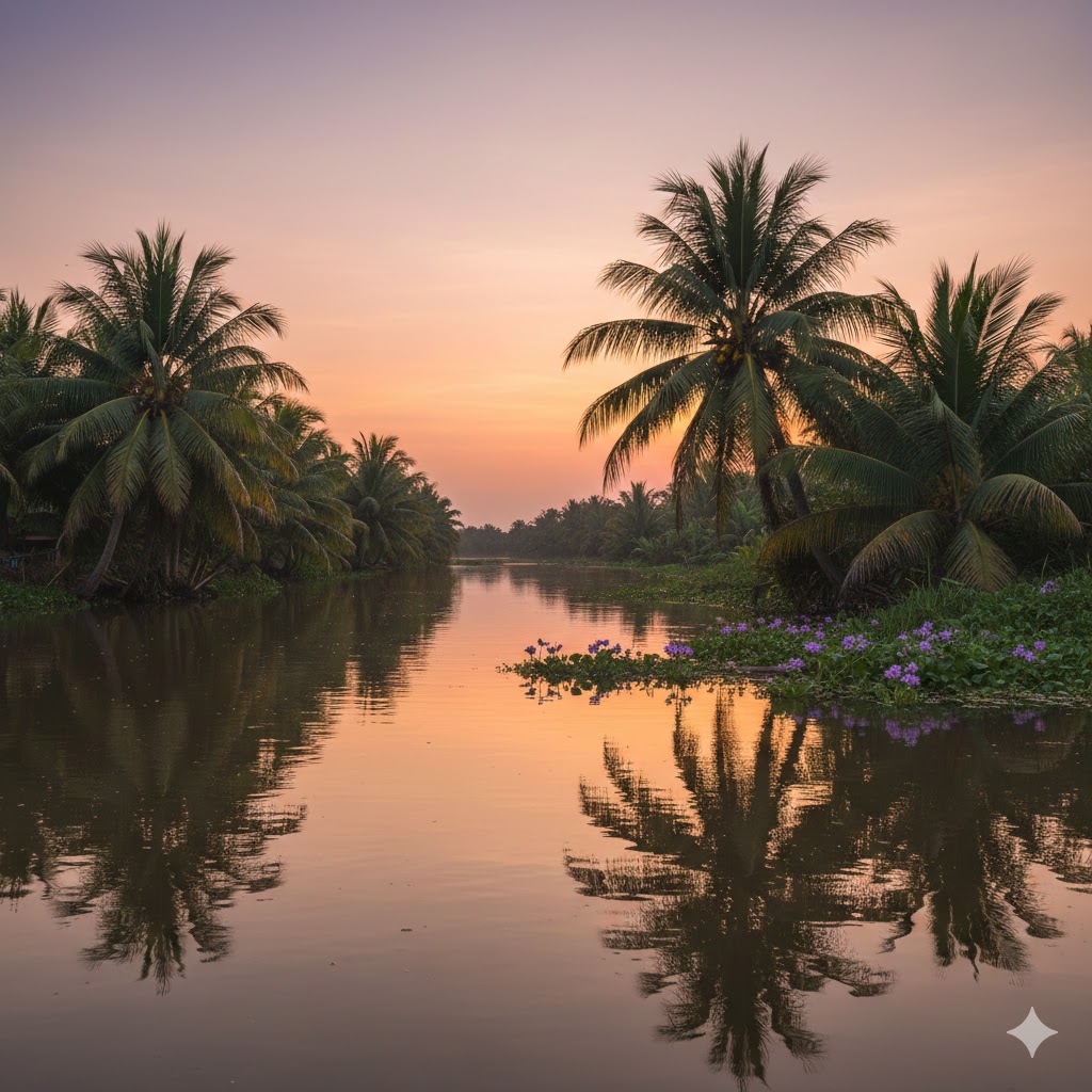 1.Mặt sông phẳng lặng như mảnh ký ức nằm ngang. Hai bên bờ, dừa nước ...