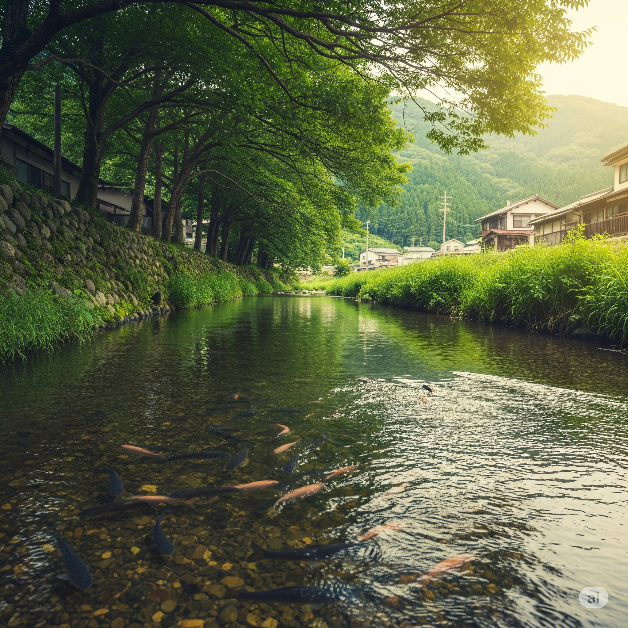 Con suối chảy qua làng tôi như một dải lụa mỏng mảnh uốn lượn giữa ...