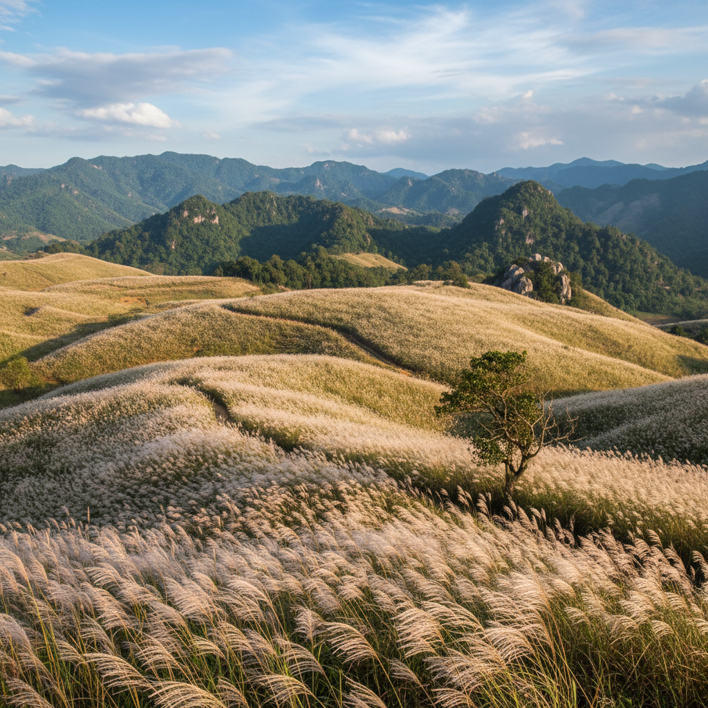 Vọng từ trời, những cánh tay ngắt nhéo lấy từng trảng đồi. Nắng thả đốm ...