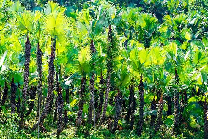 Rễ cọ tỏa chùm như rễ tre, nhưng không gây đau cho đất, đất cọ giàu mùn, không bị mòn xói, kiệt tàng. Từng mũi rễ len lỏi trong sỏi đá chi chút tìm dưỡng chất nuôi cây. Rừng cọ sau khi đẵn lá lợp nhà hãy còn bao nhiêu khoảng đất trống thênh, có thể trồng củ từ, vùi gốc sắn dây và vô số dứa mật mà vẫn kịp đợi cho mùa lá cọ mới năm sau…