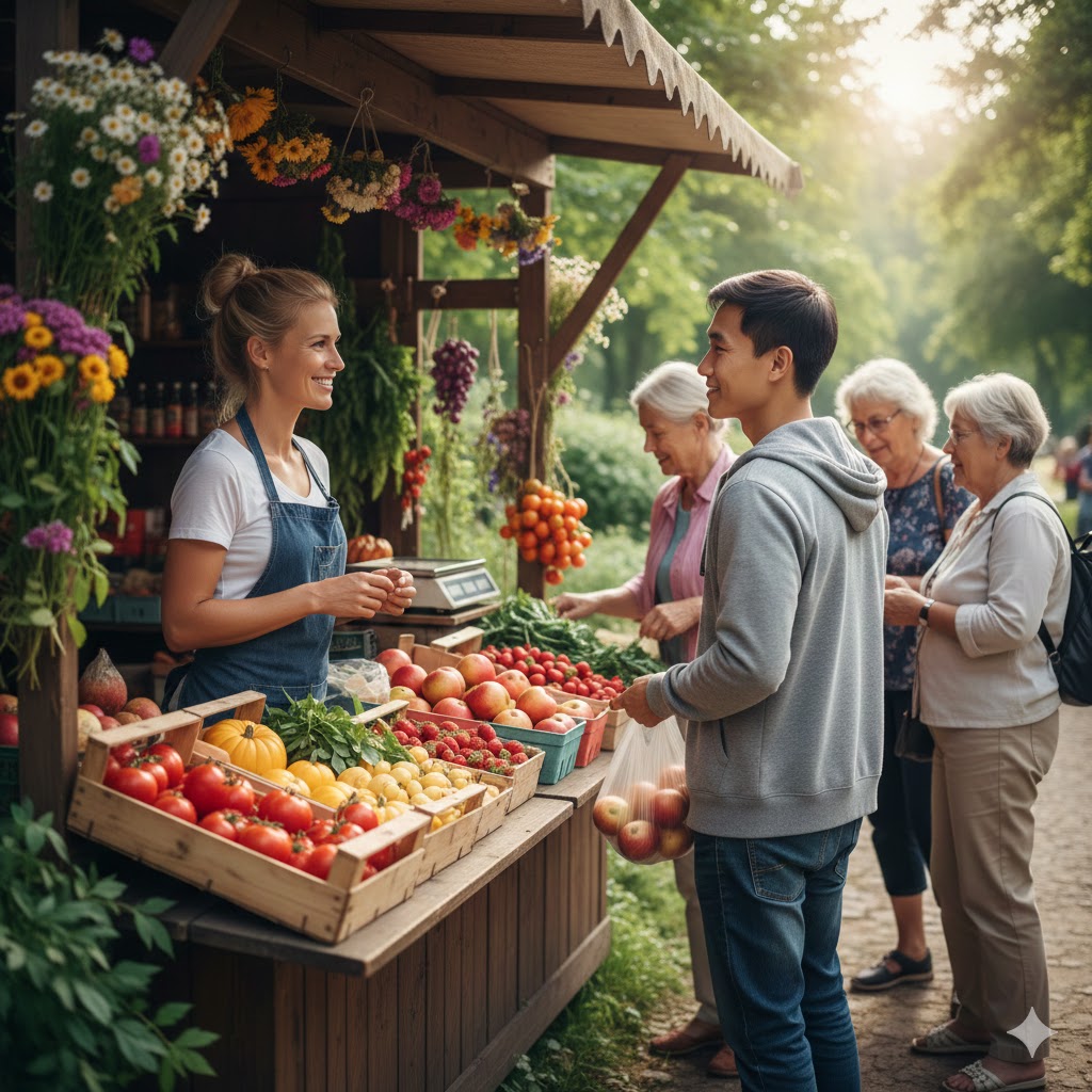 Mùa nào thức nấy, trứng gà, trứng vịt, khoai tây, cà rốt, lê, cam, chuối, táo quanh năm. Đặc biệt sôi nổi vào hè với măng tây, dâu tây đỏ mọng, đựng trong từng giỏ lớn. Tươi, ngon, đảm bảo 100% bio, giá bán thẳng từ các gia đình nông dân, không qua trung gian.