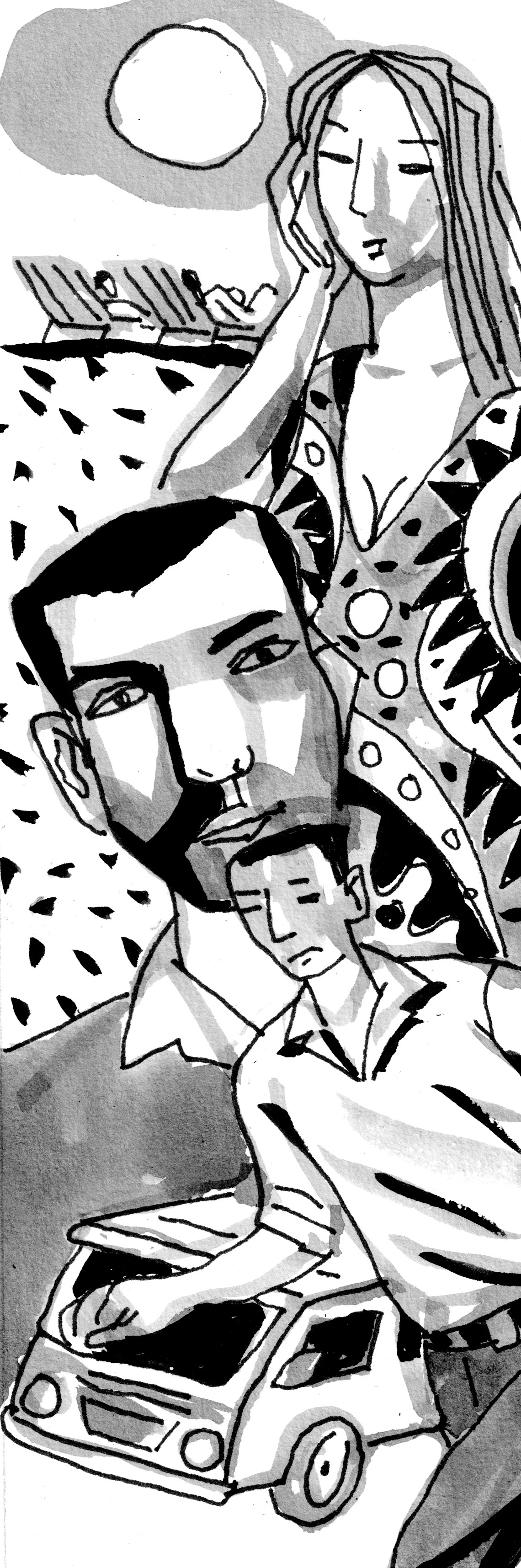Vừa trưa nay, lúc Loan đi ra cửa, lướt ngang qua vệt nắng xiên chéo từ giàn hoa giấy, mái tóc cô ấy ánh lên một màu vàng ma mị. Nhìn chiếc váy đen cổ rộng lộ cả bờ vai nõn nà của vợ, cảm giác bất an chợt gợn lên trong anh. Anh xách giúp vợ chiếc va ly đặt vào cốp xe rồi đi ra mở cổng. Xe nổ máy, anh hấp tấp tiến lại bên hông xe, thấy bóng mình méo mó ngắn chũn trên tấm kính phản quang của chiếc Mercedes đen bóng. Anh gõ gõ vào thành xe, Loan hạ kính xuống nhưng vẫn mải mê nghe điện thoại. Đợi vợ “dạ vâng” xong cuộc thoại, anh cúi xuống sát cửa kính, giọng e dè như hụt hơi: “Em đi cẩn thận nhé!” Cô ấy nhếch cười: “Có phải lần đầu tiên em đi công tác đâu. Lịch làm việc là ba hôm, nhưng cũng có thể kéo dài hơn vì đây là dự án mới. Ở nhà anh nhớ để ý mấy con hoàng yến kẻo nó chết khát. Cả chậu cây kim tiền nữa, anh nhớ pha ấm trà đặc, để ngấm qua đêm rồi hãy tưới”. Chiếc xe lừ đừ tiến ra cổng, lướt qua mấy quán trà đá, qua những ánh mắt nửa ngưỡng mộ nửa soi mói ghen tị của đám người nhiều chuyện rồi hoà vào dòng xe trên đại lộ.