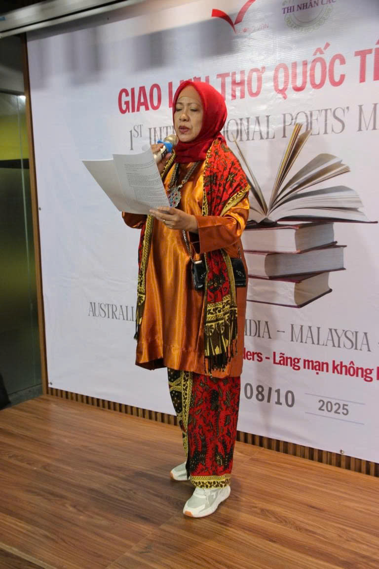 Buổi giao lưu diễn ra trong không khí trang trọng và thân mật, được dẫn dắt bởi MC tài hoa, nhà thơ Đỗ Anh Vũ. Anh đã mở lời chào mừng các nhà thơ, dịch giả, học giả đến từ các quốc gia: Indonesia, Malaysia, Ấn Độ, Úc và Việt Nam, tạo nên một bức tranh đa sắc về thi ca thế giới.