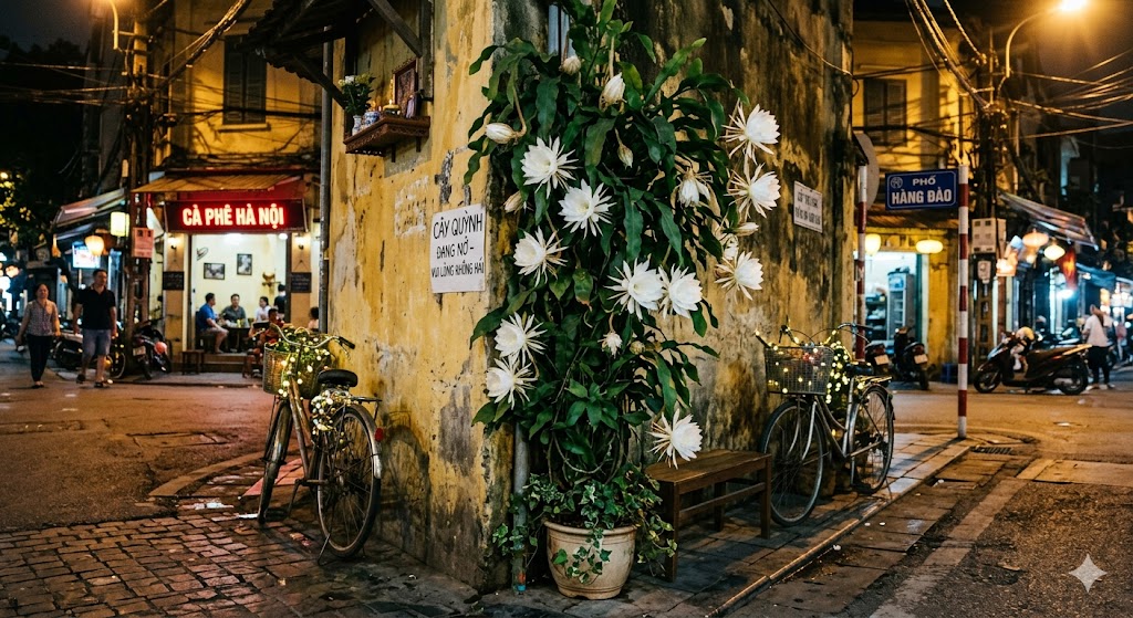 Tôi bồn chồn trong lòng. Vòng quanh phố, hoa trồng cũng nhiều chủng loại lắm! Thắm tươi của màu hoa đỏ thì khắp ngõ phố đều có. Rỡ ràng màu vàng cũng không hiếm. Kiếm tìm đỏ mắt ít thấy màu trắng khoe sắc trong nắng. Tỏa hương thơm về đêm càng vắng! Tôi nhớ lúc còn ở quê, anh P.T.T đam mê cây cảnh, hoa thơm đầy ngõ, khắp vườn. Dường như mỗi bước chân vào nhà hoa đơm kín lối. Mùi thơm len lỏi nếp áo, nếp khăn. Anh giỏi xin ở đâu được một khóm hoa quỳnh.