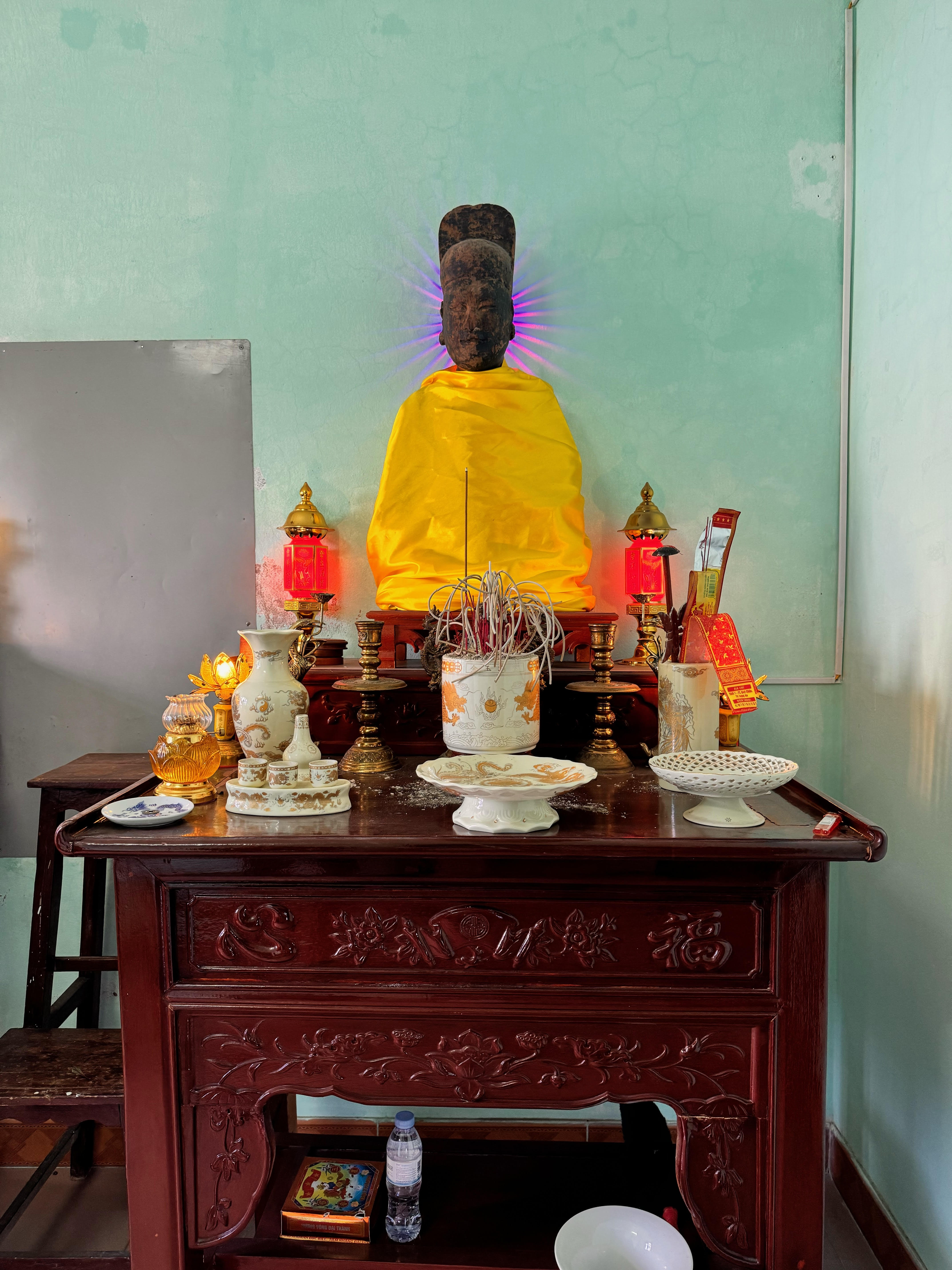 Thắp một nén nhang thành kính cho người thi sĩ, xin phép ngài cho tôi được chụp lại ảnh bức tượng, tôi cảm thấy dường như có ánh mắt từ bên trên đang nhìn tôi với sự thân thiết và hết sức dịu dàng. Chỉ mong rằng có ngày hai bức tượng cha con họ (nay vẫn được thờ ở hai nơi) được đoàn tụ về cùng một chốn.