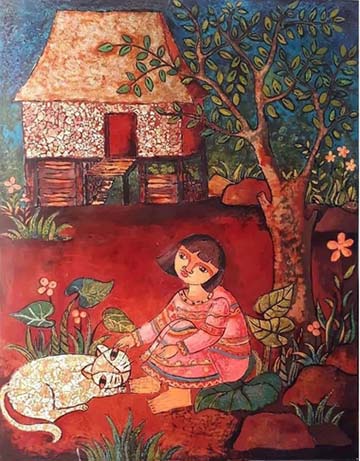 Hình như tôi lại chợt nhớ nhung cảm giác con mèo mướp vừa chui ra từ đống tro bếp, đứng rũ sạch bụi, rồi lượn tấm thân, cọ bộ lông mềm mại và ấm nóng vào tay mình. Tôi dừng lại rất lâu ở bậc cầu thang, nhìn mãi cô bé con và con mèo, trong cảm giác vừa nhấp một cang rượu cần, thấy sông suối núi đồi tan loang dần vào đêm ướp sũng hương xuân.