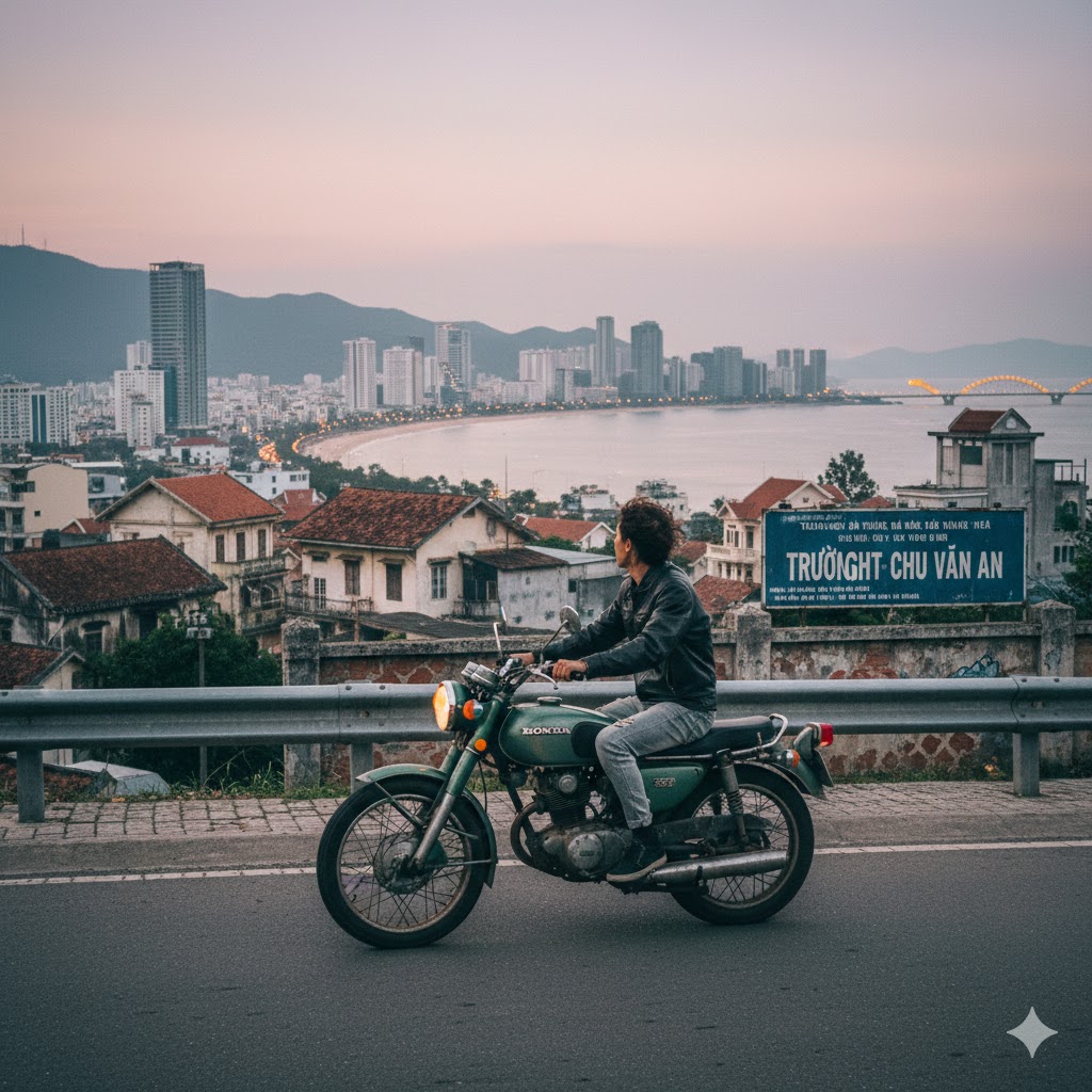 Tôi sống ở quê, vài năm rồi mới có dịp ra Đà Nẵng vừa vì công việc, vừa để đổi gió. Tôi có hẹn với một vài người quen thân cũ, biết ai cũng bận rộn nên tôi có nhắn trước mấy ngày. Thành phố mỗi ngày mỗi khác, phát triển theo hướng hiện đại, văn minh và dân cư ngày càng đông đúc hơn. Mỗi sáng tôi đi chân trần lội bộ ra biển, chạy trên bãi cát dài, đón bình minh thức dậy, cảm giác thật dễ chịu và êm ả. Buổi chiều tôi thuê xe máy chạy lên Sơn Trà, ngắm những tòa nhà của thành phố uốn cong theo đường bờ biển, rồi chạy dọc qua những con phố cũ, nơi có ngôi trường tôi đã từng học, lặng người ngắm khu giảng đường từ xa, nhớ về một thời sinh viên nhiều khát vọng, nhớ thầy cô và những người bạn giờ đã phiêu dạt khắp bốn phương trời, trong đó có những đứa chọn bỏ phố về quê sống một cuộc đời điền dã – như tôi.
