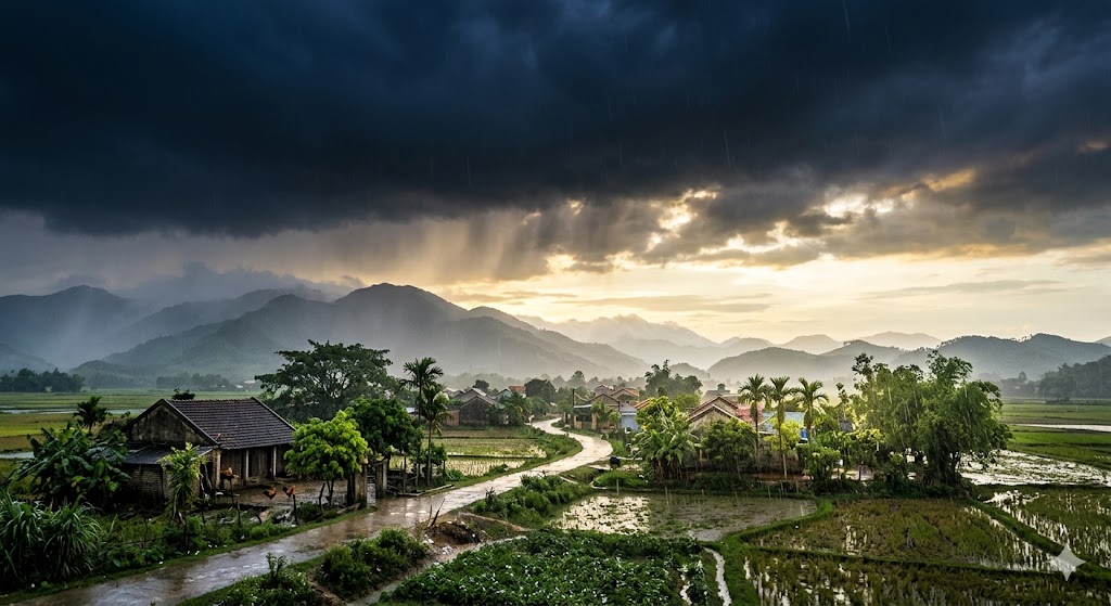 Bóng mưa bắt đầu từ từ kéo về bằng cái cách tấm màn của đêm được những nàng “ngày” kéo nhẹ bởi những thứ ánh sáng vàng vọt le lói nơi phía cuối chân trời đẫm nước. Bầu trời khi ấy bắt đầu loang lổ dần như một bức tranh mới chốc nãy còn tối hù nhưng giờ đã có những điểm sáng bắt đầu vụt qua trên nền trời đen thẫm. Và rồi khi những hạt mưa cứ như những cô gái e ngại nấp sau những đám mây đen trở nên tự tin hơn với vẻ đẹp của mình, chúng nhảy những điệu vũ rõ ràng hơn trên bầu trời rồi rơi xuống trên nền đất lạnh. Những hạt mưa nhảy đến đâu kéo theo mọi thứ xung quanh rực rỡ hơn, sáng trong hơn và thanh tân hơn đến đó. Cho đến khi bóng tối từ từ mất hẳn, vài tiếng gà biếng lười gọi bình minh trở mình đến trễ, cũng là lúc ngày bắt đầu về.