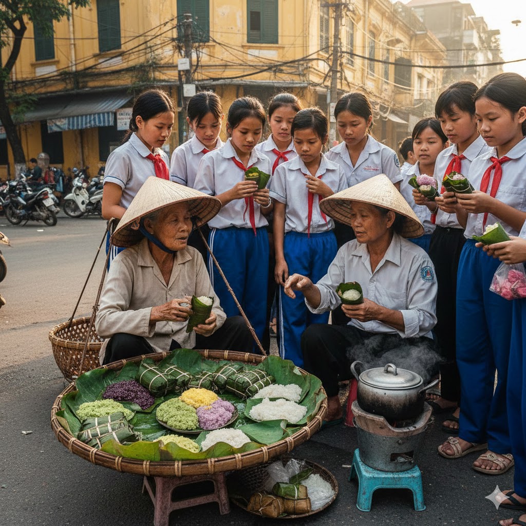 Ngày mới lên, đô thị bừng tỉnh với những tiếng còi xe trên đường, tiếng chào hỏi trong ngõ, luận bàn thế sự ở các hàng quán trên phố và mặc cả râm ran trong khu chợ. Khung cảnh dần sáng rõ khi nắng lên, sương tan. Thế nhưng đâu đó vẫn còn vương làn khói mờ ảo kèm theo hương thơm gợi cảm giác thật ấm bụng: Hương xôi nếp.